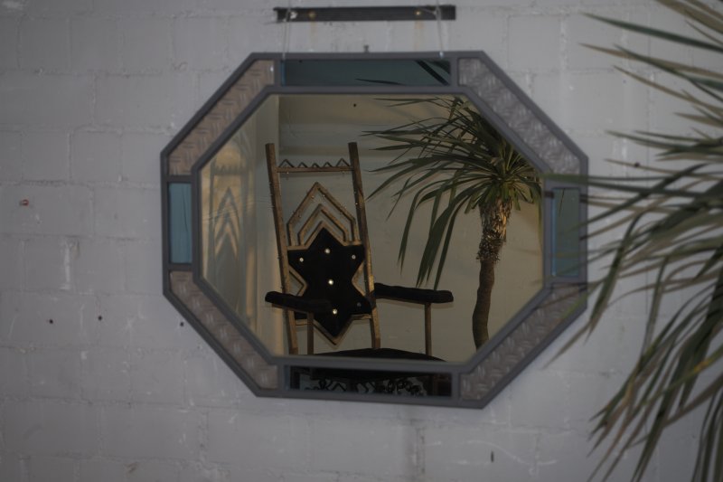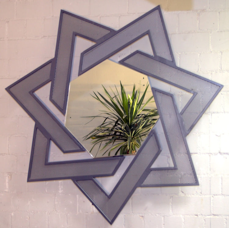 Diese Spiegel sind Einzelstücke aus Metall mit Kristallglas. Sie werden Sandgestrahlt und dann lackiert.
